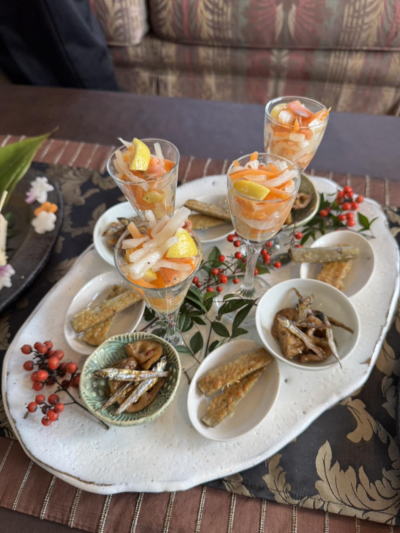 11月は早々とお正月料理でしたが、2025年は生徒様のリクエストで洋風のオードブル盛り合わせとなりました。